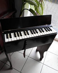 Als echtes Leichtgewicht kommt dieses praktische Tischharmonium daher wenn man mit gut drei Oktaven Umfang der Klaviatur auskommt, ist das ein wunderbares Reiseinstrument.
