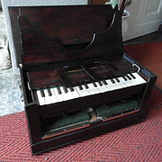 Zum Neubau dieses Kofferharmoniums wurde ich durch ein Kundeninstrument inspiriert, das die Brüder Peter Philip und George E. Bilhorn aus Chicago unter der Bezeichnung "Telescope Organ"vermarkteten.