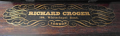 An diesem hier war einiges mehr zu richten, denn beide Schöpfbalgplatten waren komplett durchgebrochen, und das Fundamentbrett hatte sich so extrem verzogen, daß es erneuert werden mußte. An vielen Stellen fanden sich Stempelsignaturen des wohl ersten Besitzers, eines Pfarrers aus Berlin.