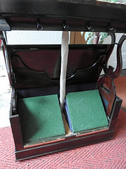 Bei den Arbeiten an diesem Instrument würde ich nicht von einer vollständigen Restaurierung sprechen. Wollte man tatsächlich die filigranen Bälge und die noch filigranere Spielmechanik (sowohl in Bezug auf die Klaviatur als auch die Tonventile) in den Originalzustand versetzen, wäre die Überholung knapp fünfstellig zu kalkulieren. Auch so ich habe es wieder vollständig bespielbar gemacht (Luftversorgung, Mechanik- und Zungenreinigung) und den raffinierten Korpus überholt, dabei alles original belassen ist das Instrument eines für jemanden, der aus kulturhistorischen Interesse so etwas Wertvolles sammelt und den hineingesteckten Aufwand zu honorieren bereit ist. Wie gesagt: man kann darauf wunderbar musizieren! |