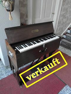 Brüderchen und Schwesterchen sind hier in der Werkstatt zusammengetroffen: Die Seriennummern von diesem und dem unter "verkauft" gelisteten, absolut baugleichen Kofferinstrument sind nicht nur nahe beieinander, sondern in der Windlade findet sich zusammen mit dem Namenszeichen des Fertigmachers auch dasselbe Datum! Ein Wiedersehen nach 83 Jahren das berührt einen dann doch...