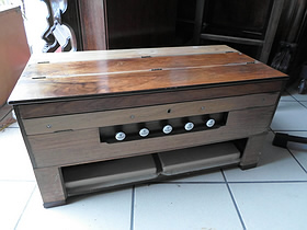 Schließlich habe ich auch noch ein zusammenklappbares Tischchen gebaut, damit man das Instrument eben auch mit beiden Händen spielen kann. Mit den 40 Mark von damals kann man das leider alles nicht realisieren ;-) |